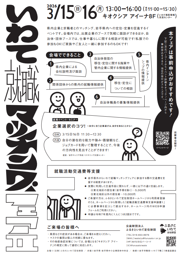 就職を目指す学生、求職中の方、岩手へのUターンを考えている方など